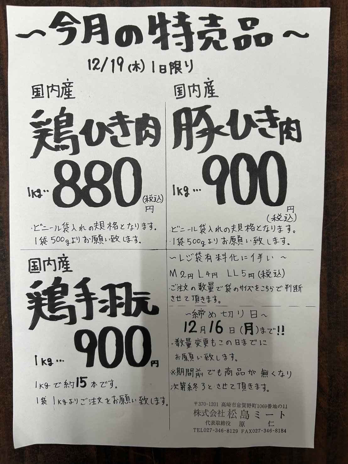2025年松島ミート年末年始特別販売のご案内です!今年も厳選して仕入れした…