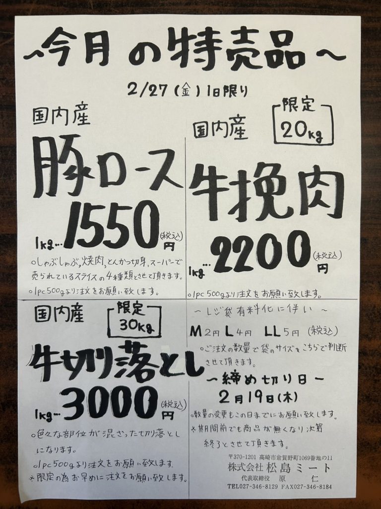 群馬県高崎市の食肉卸 松島ミートへようこそ